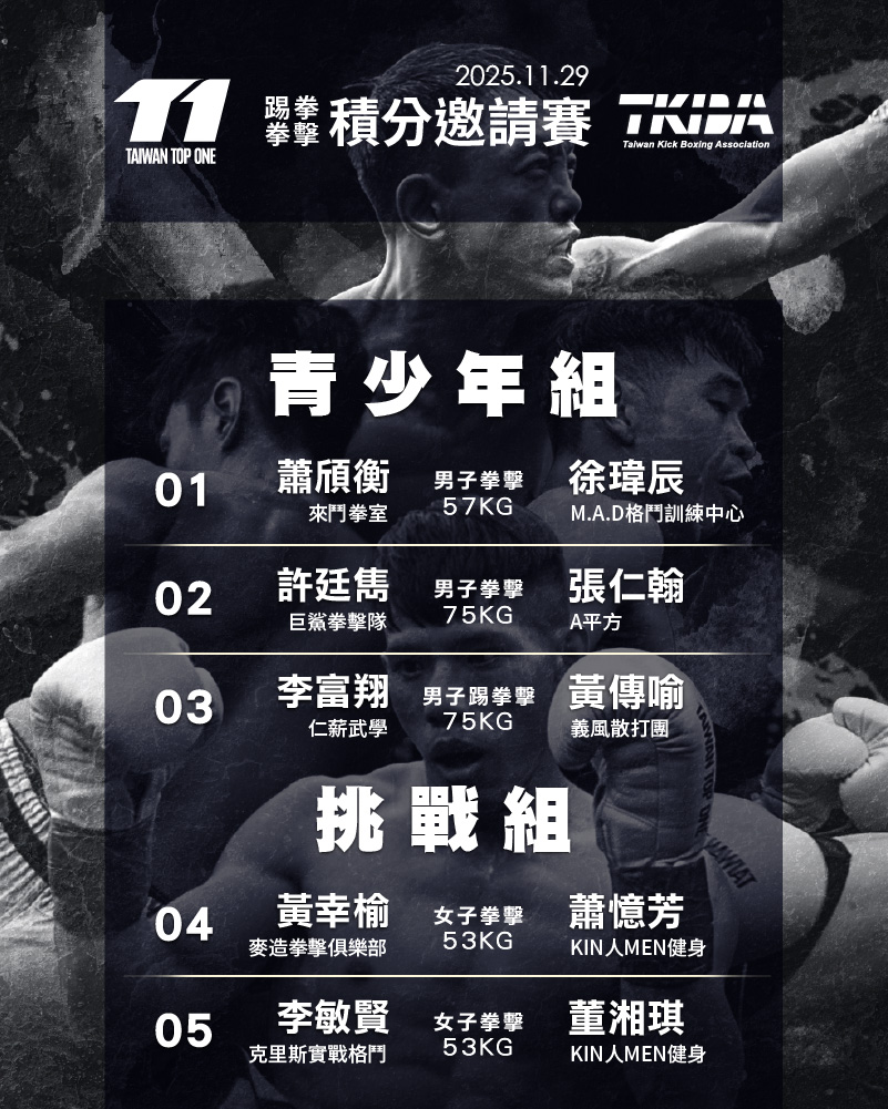 • 賽事地點:新北市三重區正義北路140號B1 (TMMA 三重館)